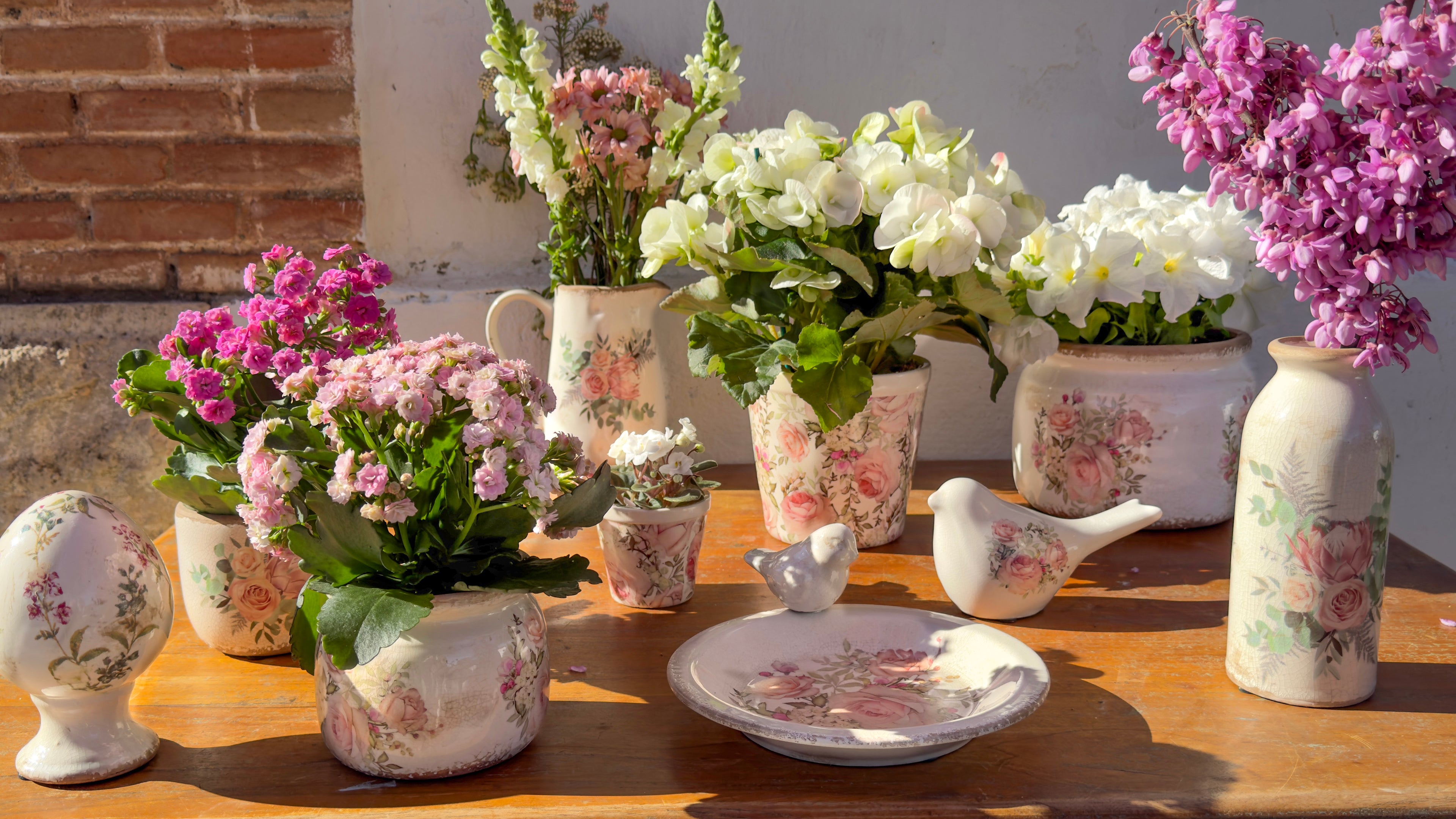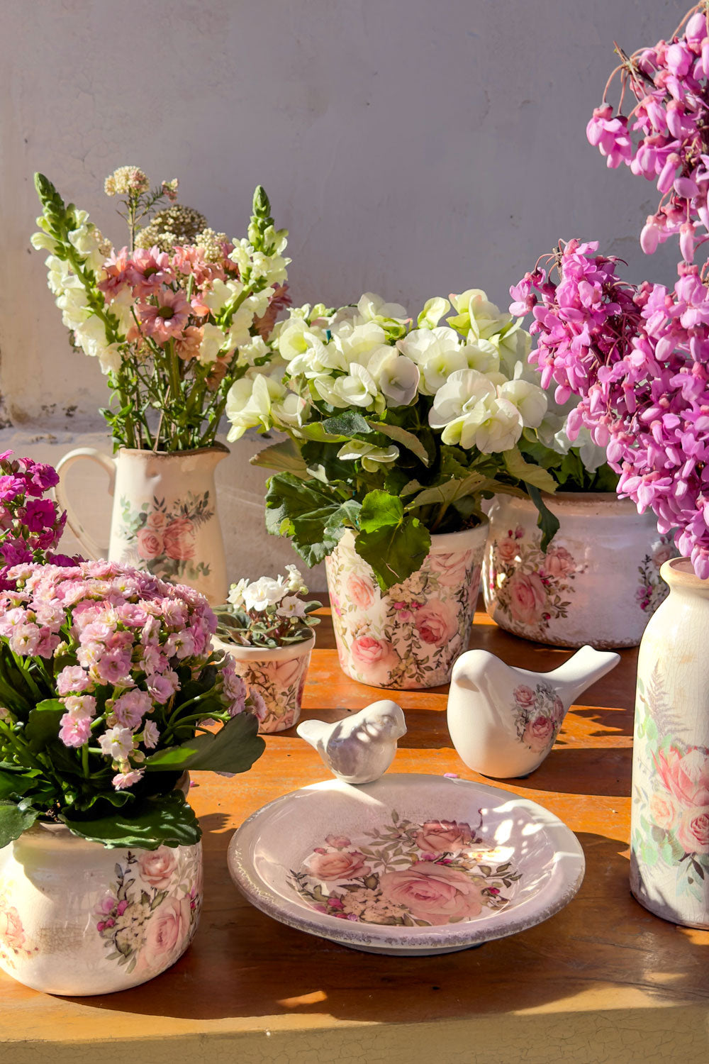 Jarra De Cerámica Envejecida Diseño Rosas