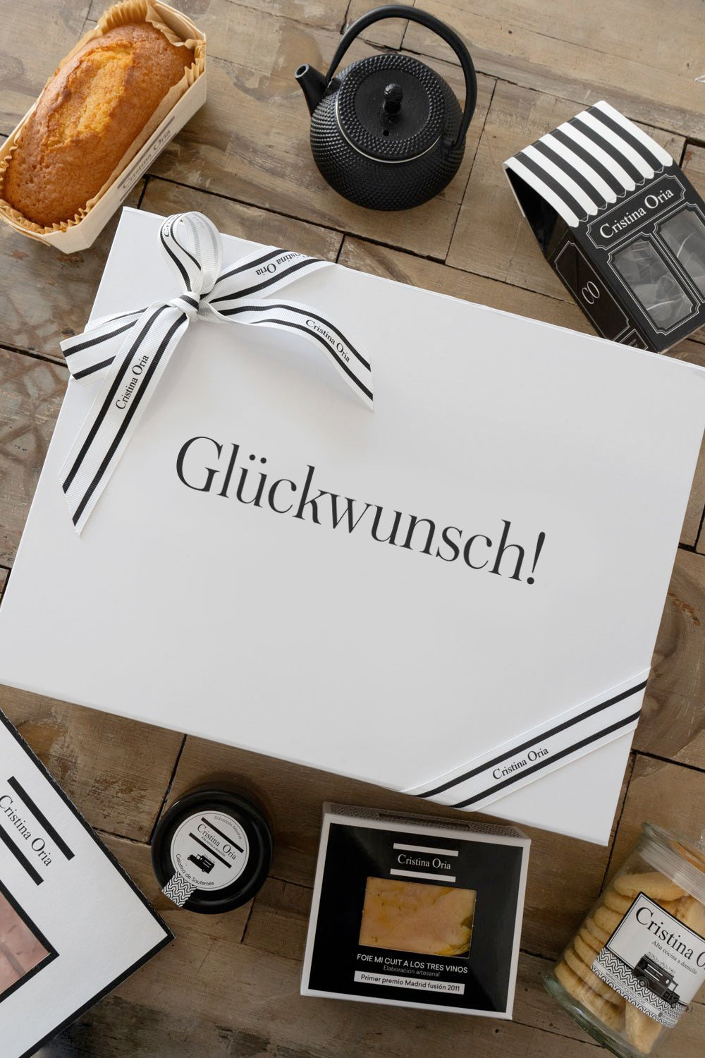 - Große CO-Box mit Seidenpapier und Schleife und Vinyl „Herzlichen Glückwunsch“