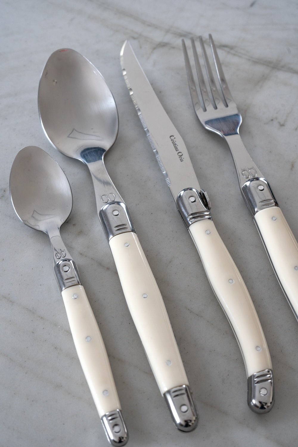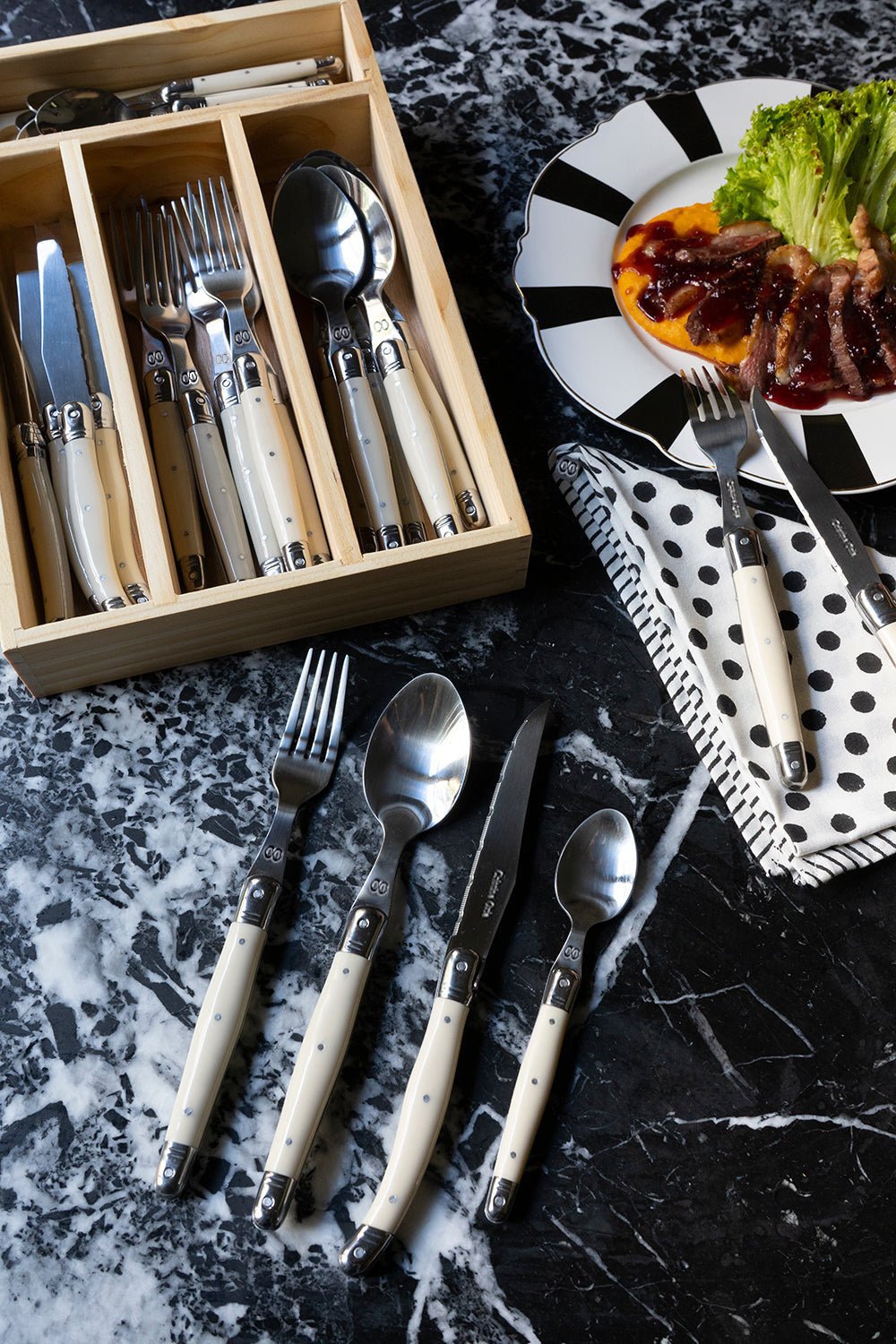 Weißes Besteck im Cristina Oria-Design, 24-teilig und Edelstahl, für sechs Personen.