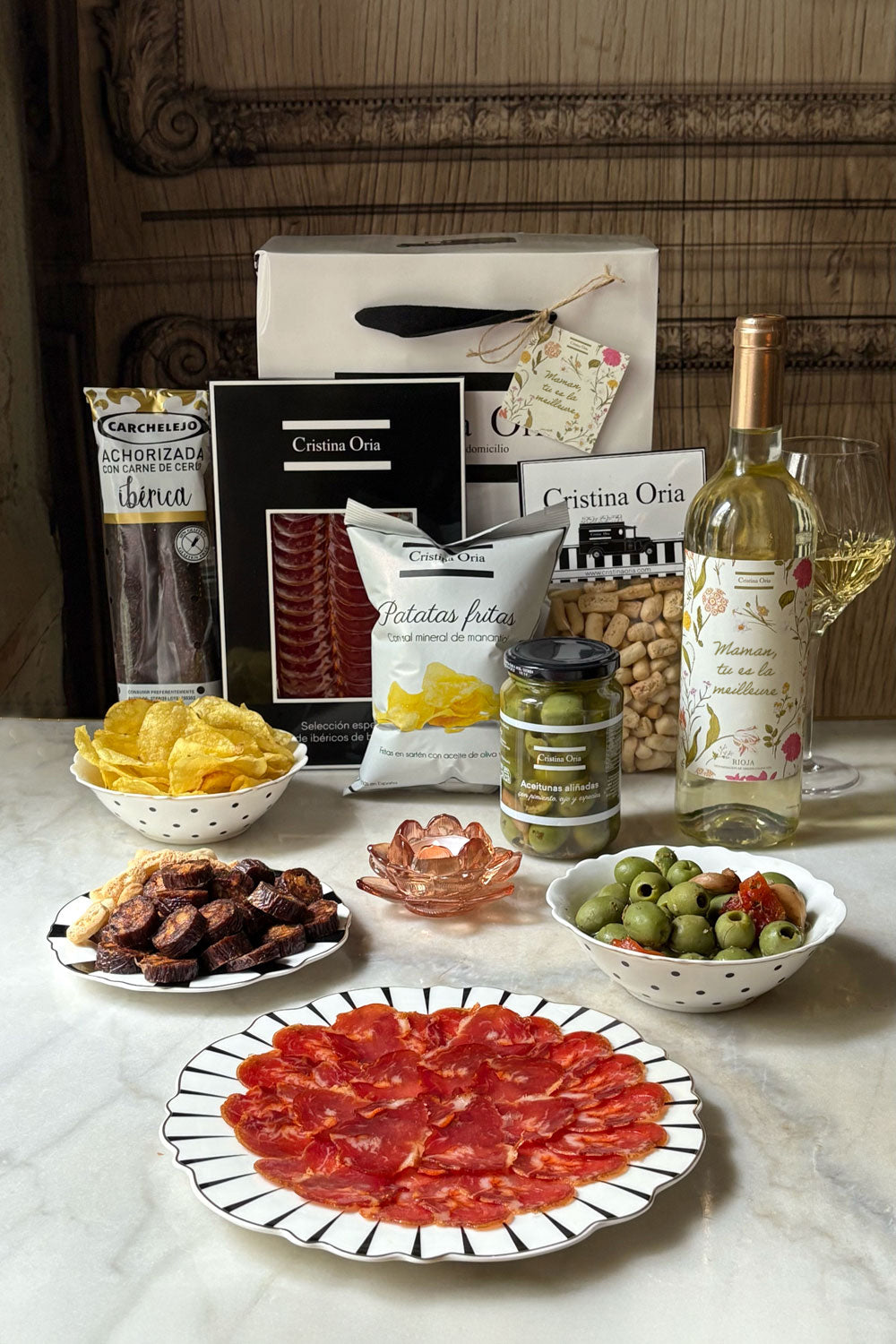 Chez Cristina Oria, nous avons le cadeau parfait pour surprendre les mamans. Explorez nos catégories et trouvez le détail idéal pour leur journée spéciale. De délicieuses boîtes et sacs avec des produits gourmets exclusifs pour choyer maman. Un vin avec une étiquette personnalisée pour l'occasion et des accessoires sophistiqués pour les amateurs de bons vins. Des boîtes décoratives avec des douceurs parfaites comme contenu, alliant style et fonctionnalité. Des pièces élégantes de notre collection de bijoux CO pour sublimer sa beauté. Des accessoires décoratifs pour embellir la maison ou des éléments parfaits pour créer une table spéciale, ainsi qu'une collection de textiles indiens apportant qualité et élégance. Faites de cette Fête des Mères un moment inoubliable avec un cadeau original et plein d'affection.
