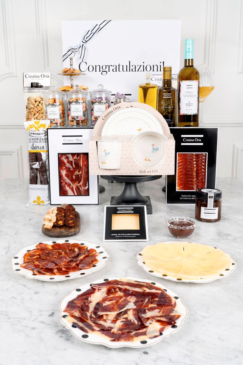 Questa scatola è una delle nostre opzioni più complete da regalare alle neo mamme, poiché include un'ampia varietà dei nostri migliori prodotti gourmet, oltre alle nostre stoviglie (tra cui scegliere) con il design di Cristina Oria per il neonato.