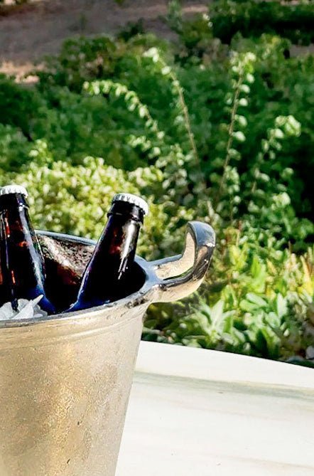 Secchiello o cubitera in alluminio con manici, ideale sia per interni che per esterni.