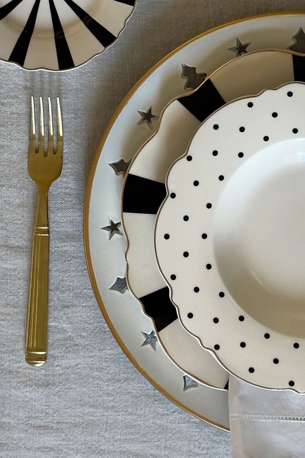 Sottopiatto bianco con bordo dorato e alberi