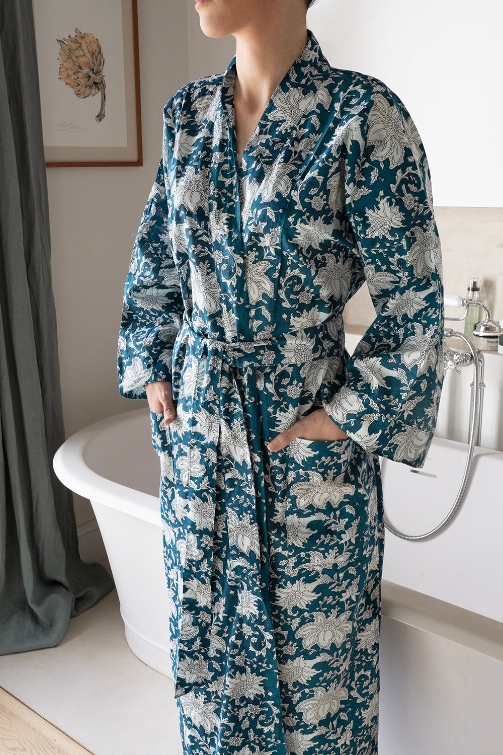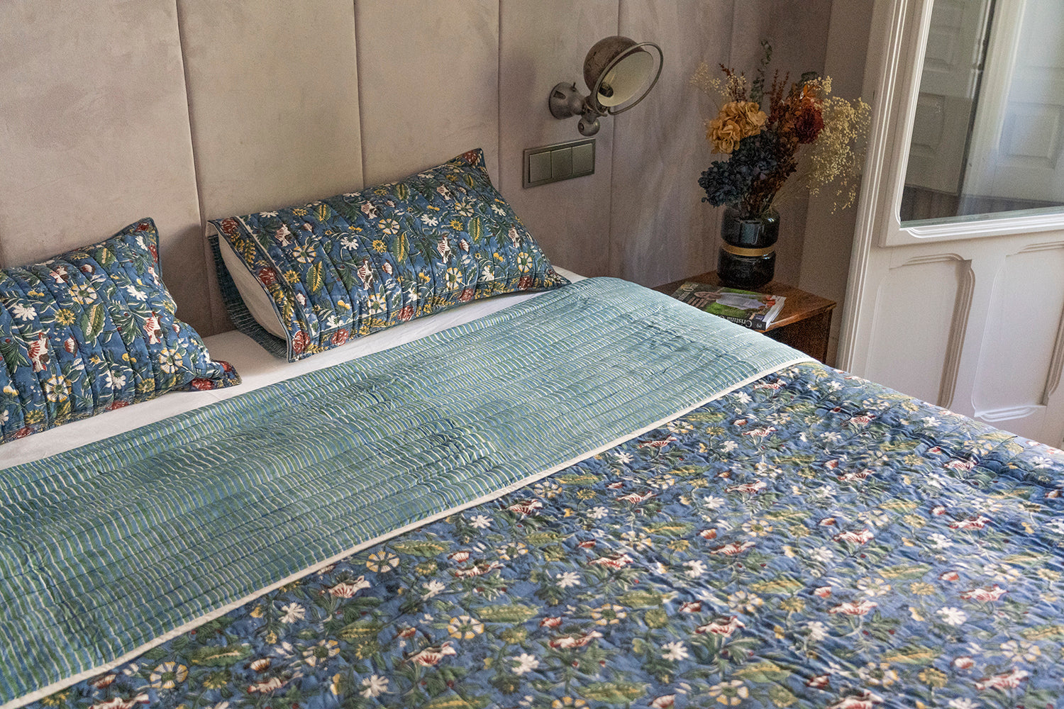 A continuación, se preparan los colores y una vez preparados, viene el proceso de impresión de los bloques. Cada diseño se imprime cuidadosamente, empleando la técnica conocida como “Block Printing”. Es un trozo de madera que tallan a mano y luego impregnan de pintura y van "sellando" el tejido distintas veces para conseguir distintos colores y formas.
