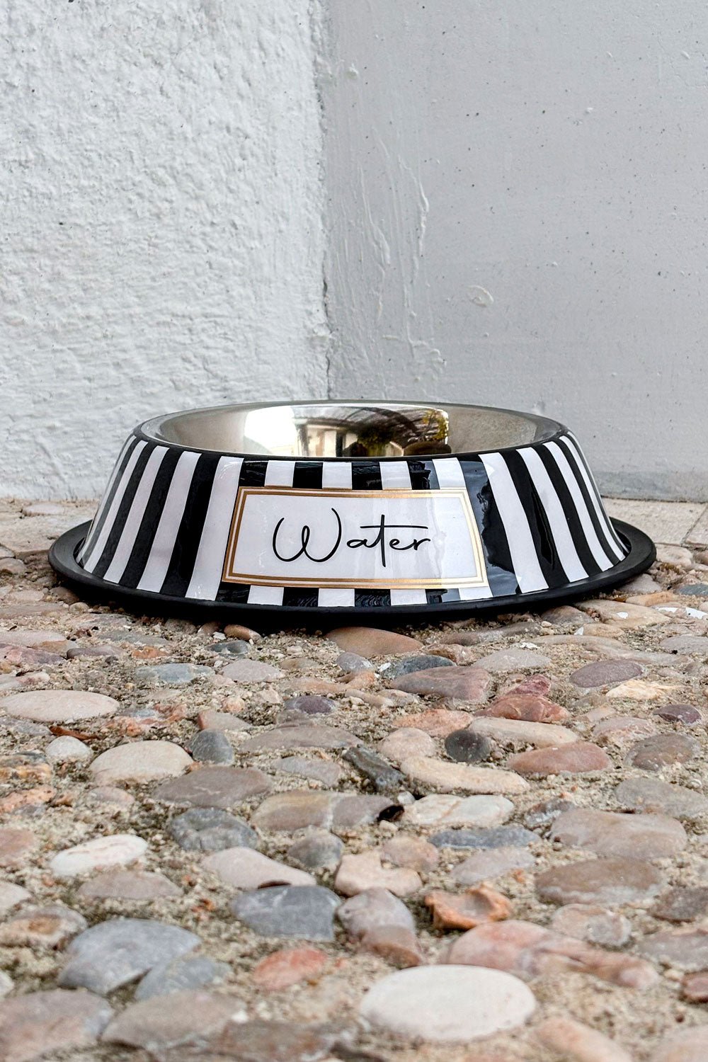 Este elegante bebedero para mascotas combina funcionalidad y estilo con un diseño moderno de rayas en blanco y negro, pintado a mano y fabricado con materiales resistentes y fáciles de limpiar.