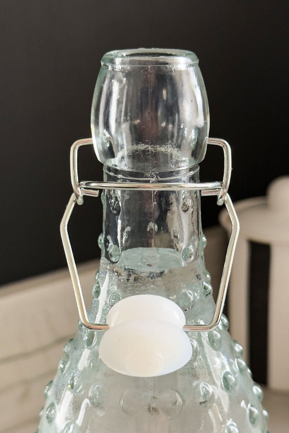 Botella de un litro de capacidad fabricada en vidrio resistente y reutilizable, ideal para agua, zumos, infusiones o bebidas caseras. Incorpora tapón con cierre hermético tipo clip, que garantiza un sellado seguro y conserva mejor el contenido.