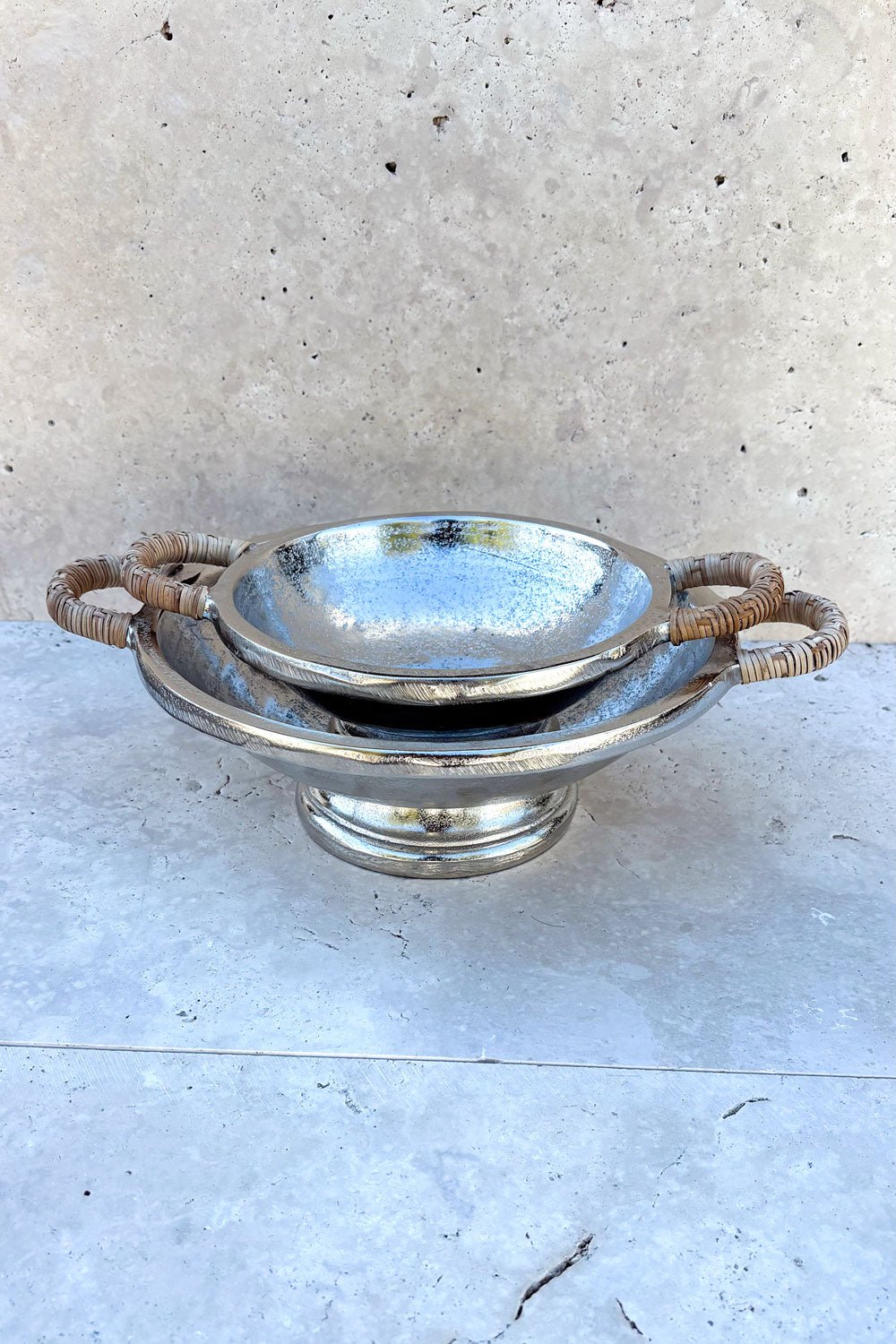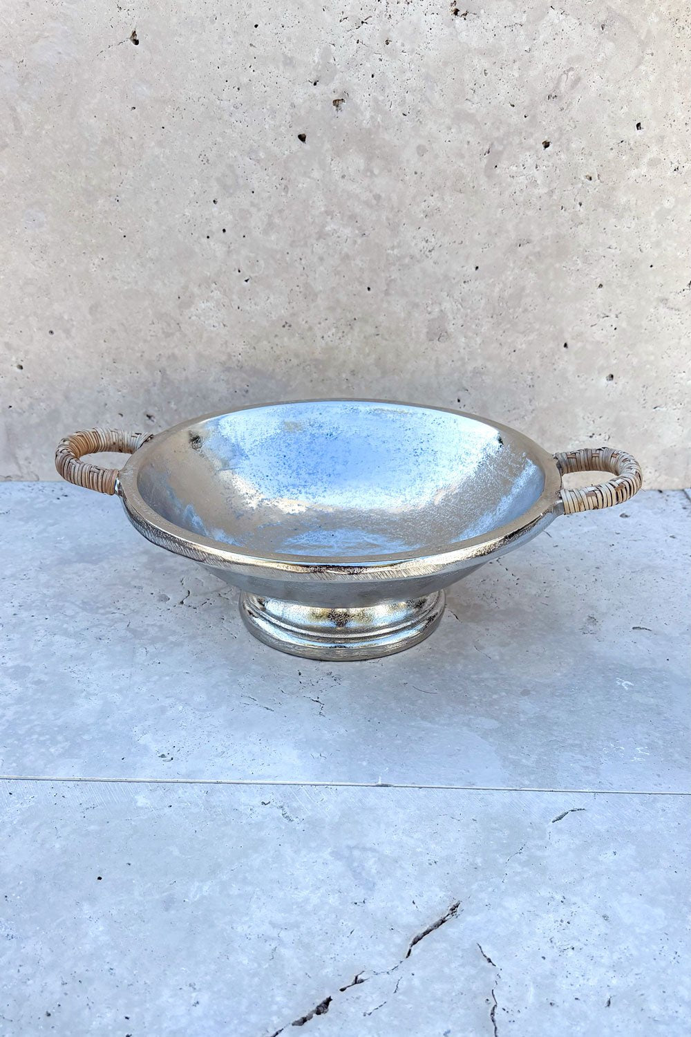 Centro De Mesa Plateado Con Asas De Ratán Mediano