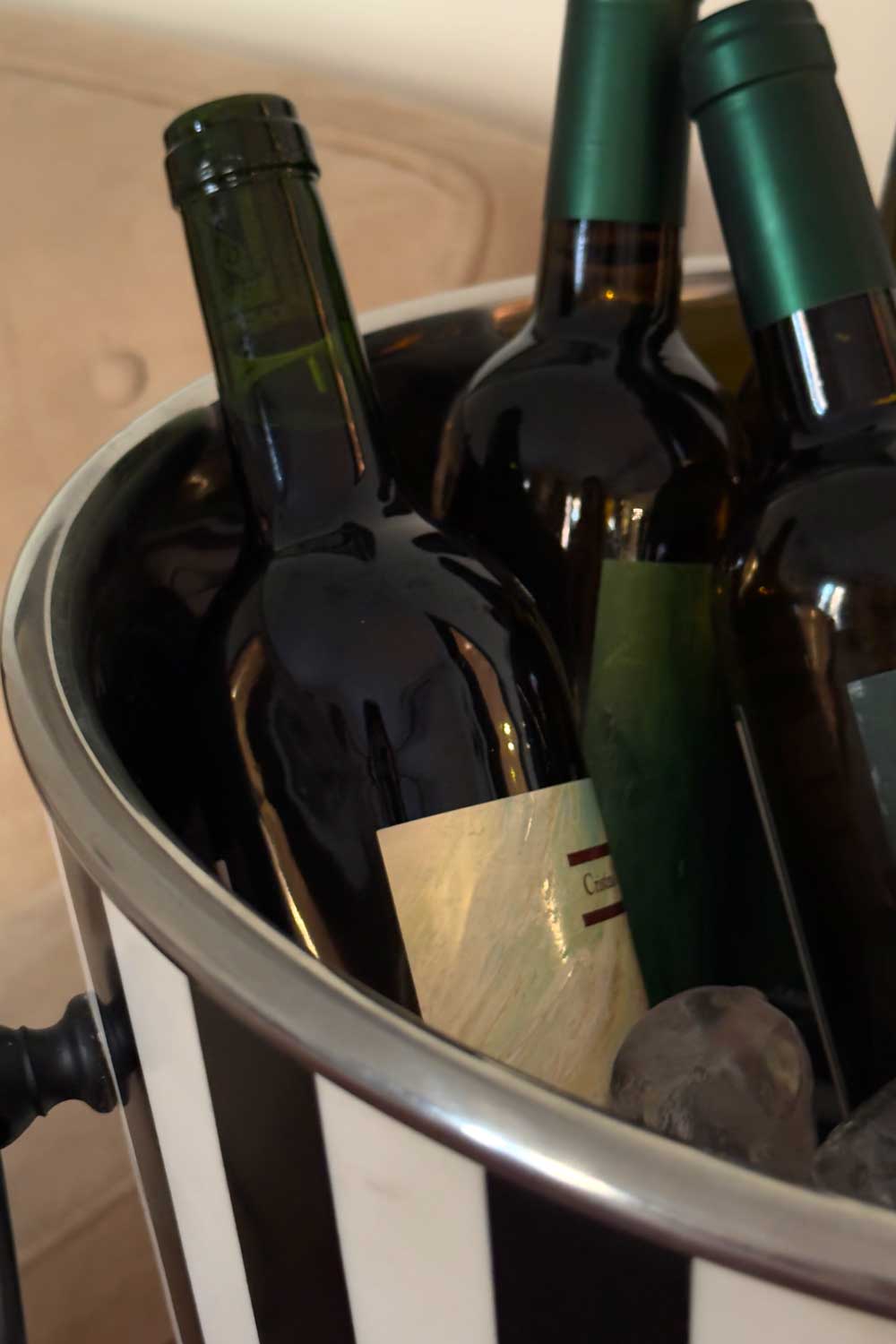 Ideal para enfriar y servir champagne o vino durante celebraciones, combina funcionalidad y diseño decorativo, adaptándose a mesas y espacios contemporáneos y añadiendo un toque de distinción y elegancia a cualquier ocasión.