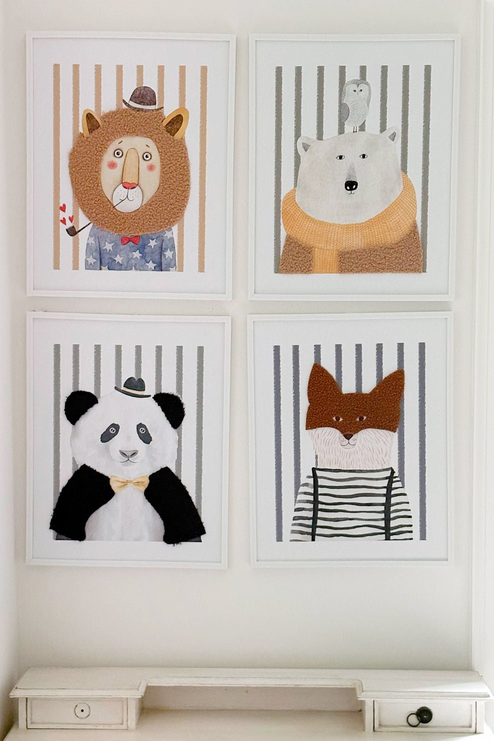 Cuadros con diseño de animales en relieve, ideales para decorar la habitación de lo más pequeños de la casa, salas de juego o cuartos de estudio, con colores vivos y formas bien definidas.