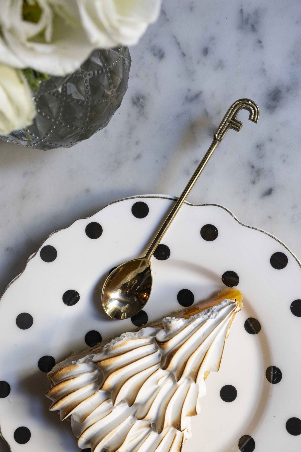 Esta elegante cucharita de bronce es el complemento perfecto para cualquier mesa. Cuenta con la inicial F grabada en su extremo, lo que la convierte en un regalo personalizado y exclusivo.