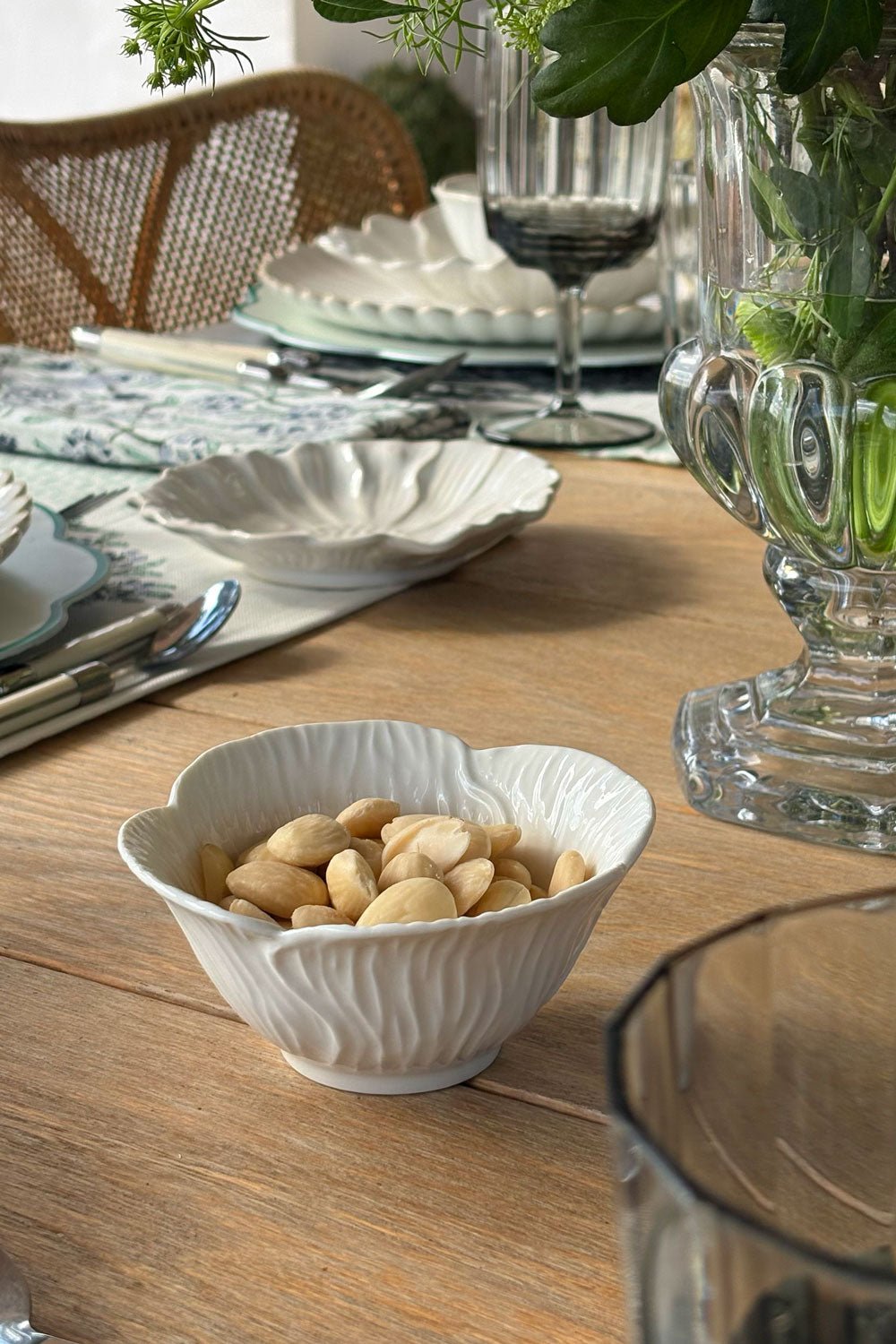 Este cuenco de stoneware con diseño de flor blanca combina delicadeza y funcionalidad en una sola pieza. Su forma inspirada en pétalos y su acabado en blanco brillante aportan un estilo romántico y atemporal que realza cualquier mesa.