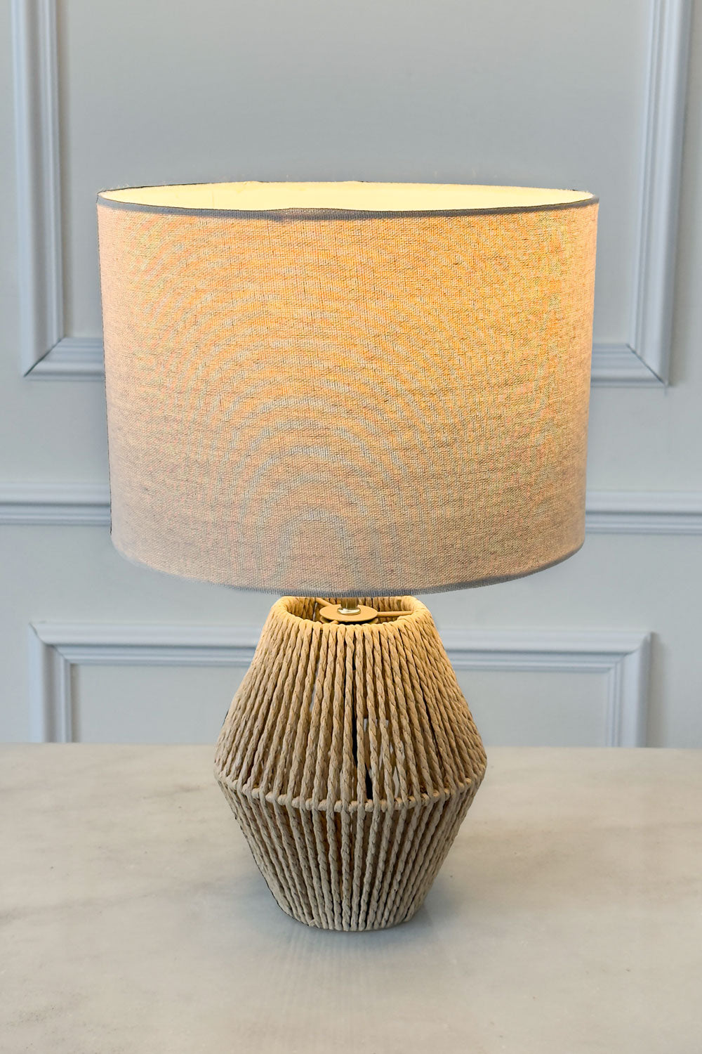 Lámpara De Mesa De Cuerdas De Papel Trenzado Con Pantalla De LinoEntrega en 24/48 horas (laborables)