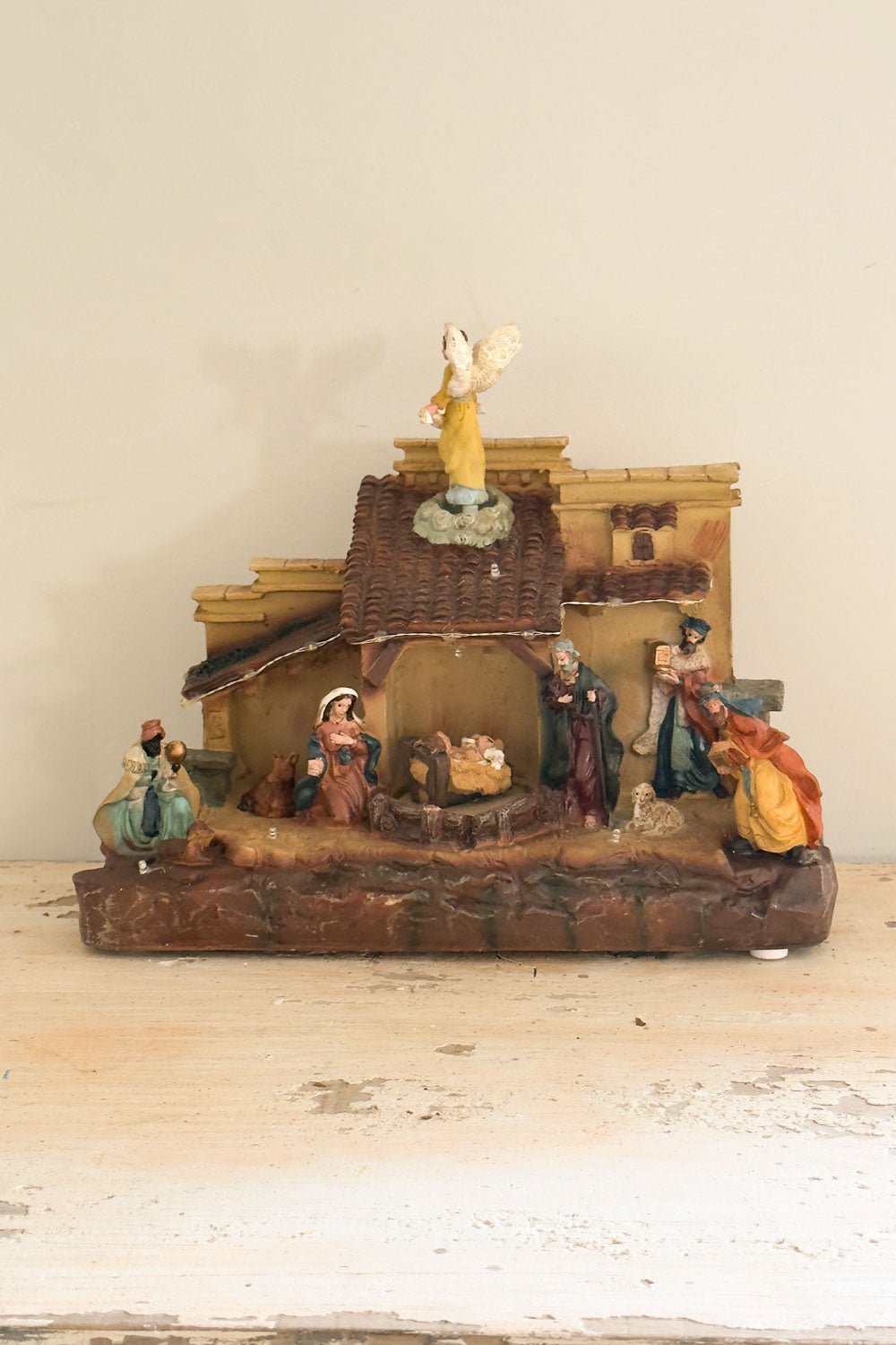 Nacimiento con luces LED integradas, diseñado para iluminar con delicadeza la escena del pesebre. La luz realza los detalles de las figuras que lo forman y crea un ambiente acogedor y lleno de encanto, convirtiéndolo en la pieza más especial de tu decoración navideña.