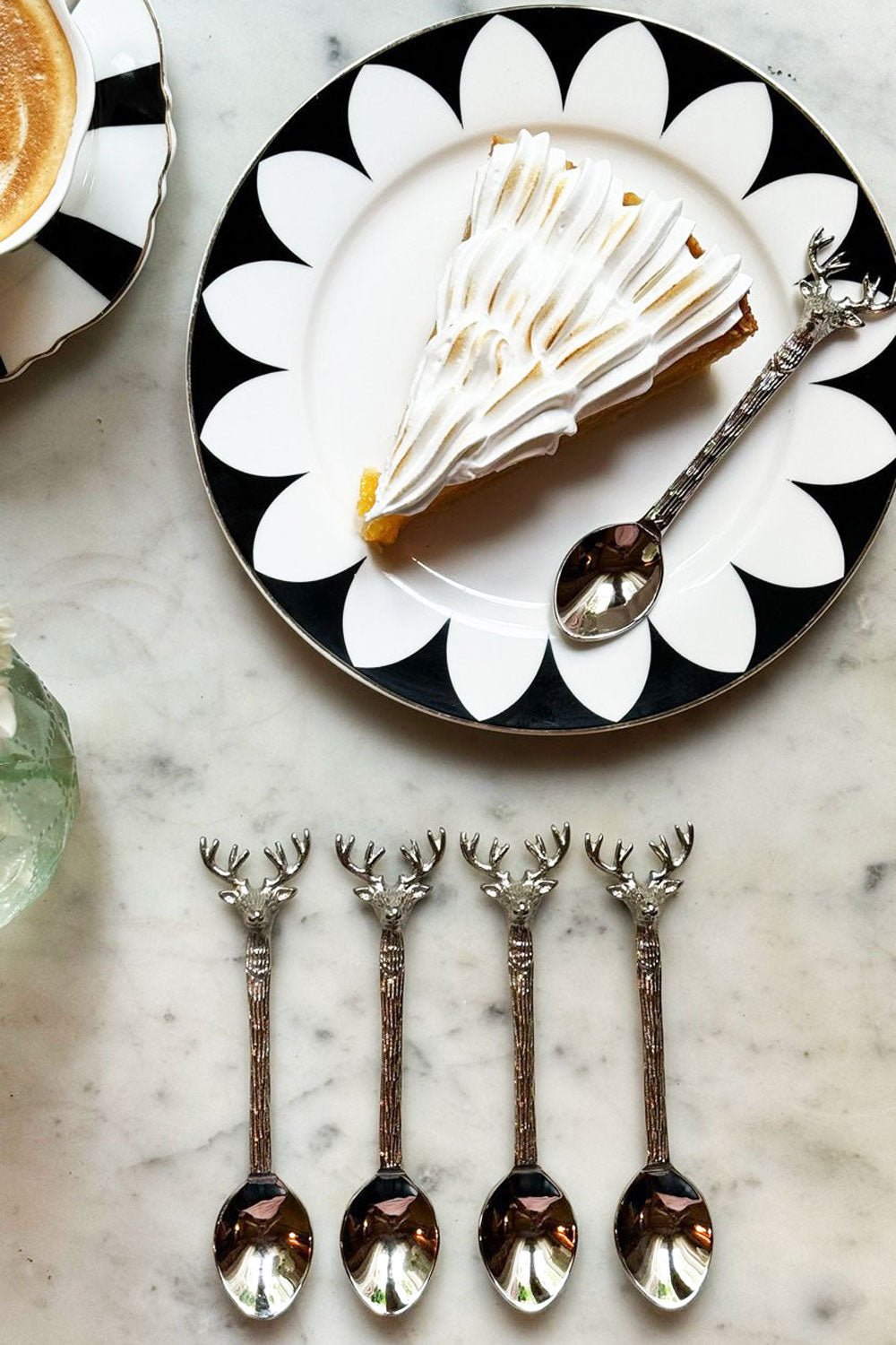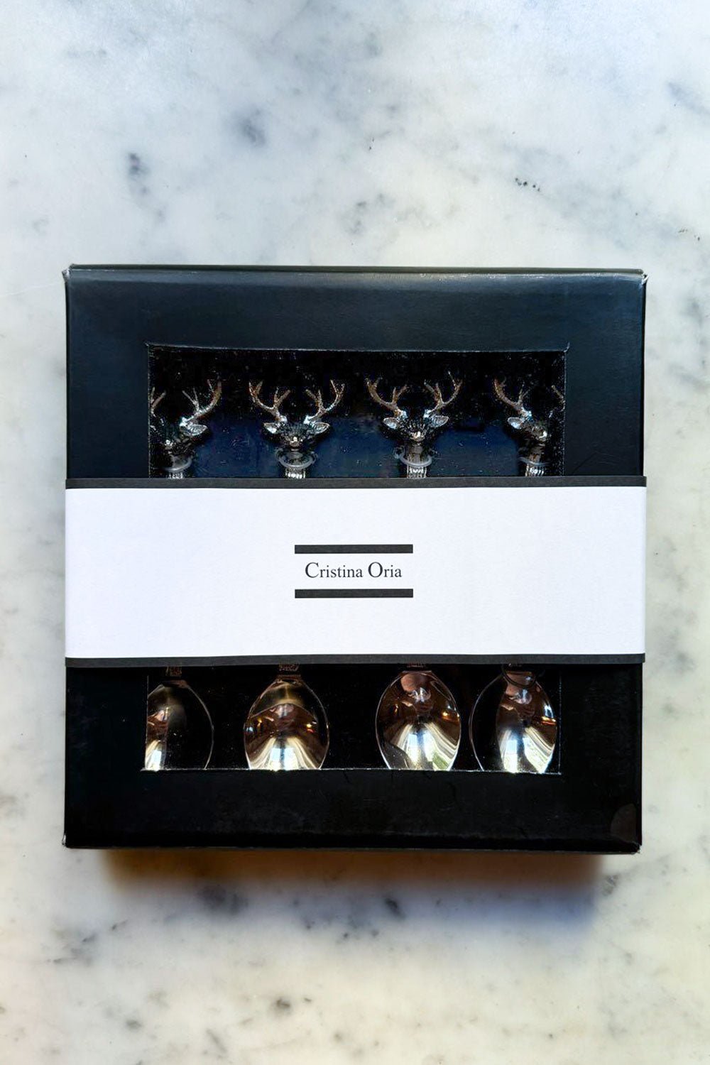 Este elegante set de cuatro cucharitas es el complemento perfecto para cualquier mesa. Cuentan con la figura de un ciervo en su extremo, lo que las convierte en un regalo único.