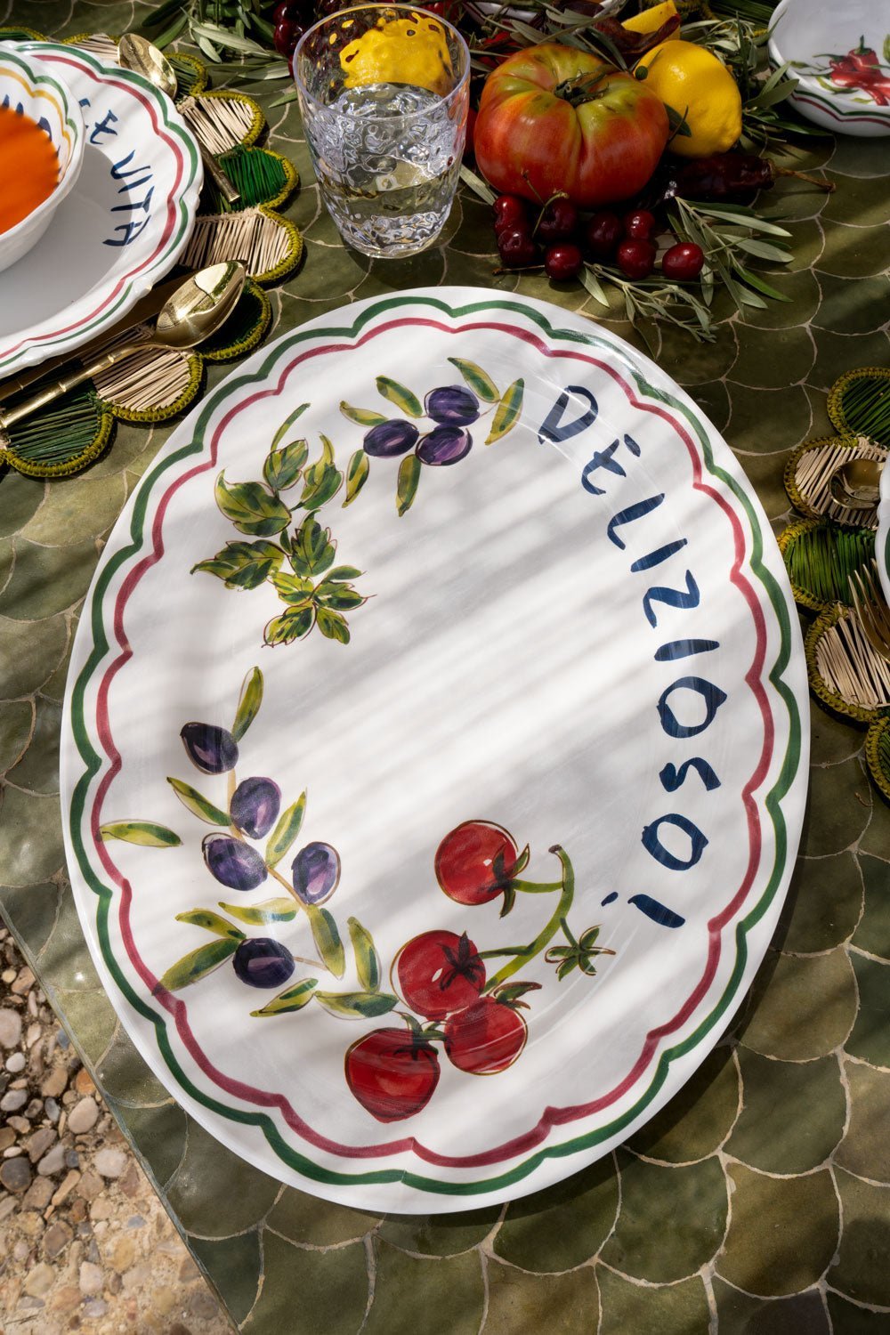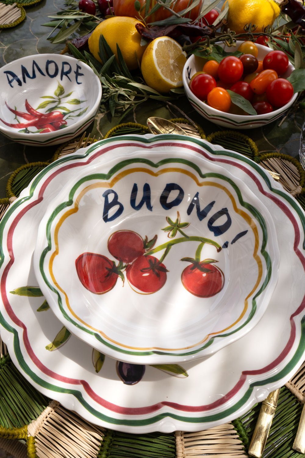 Nuestra vajilla de melamina está inspirada en la calidez, el color y la alegría de la cocina italiana. Cada pieza está decorada con frases típicas, acompañadas de ilustraciones y sabores emblemáticos del Mediterráneo.