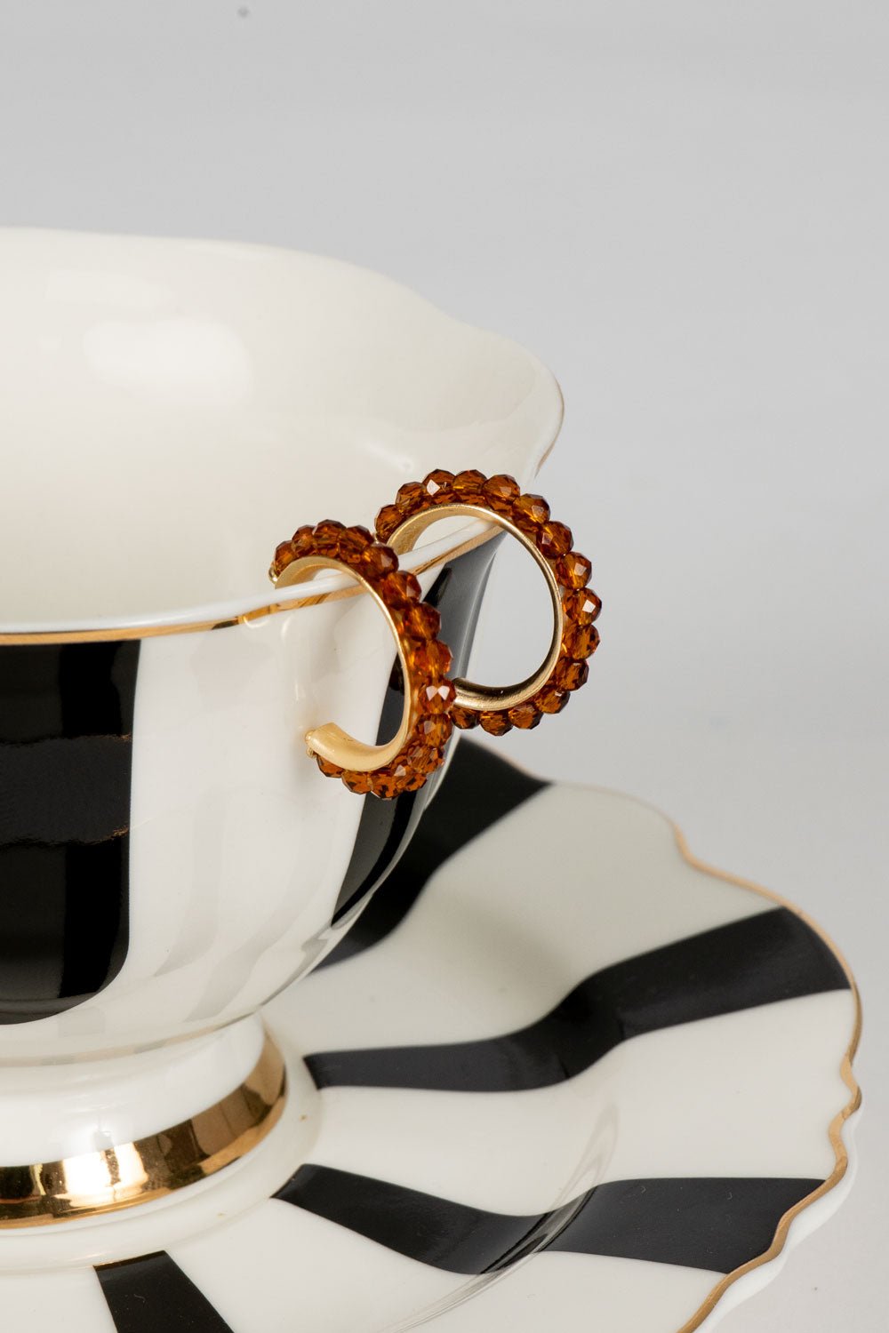 Brincos dourados com design de argolas e pedras âmbar