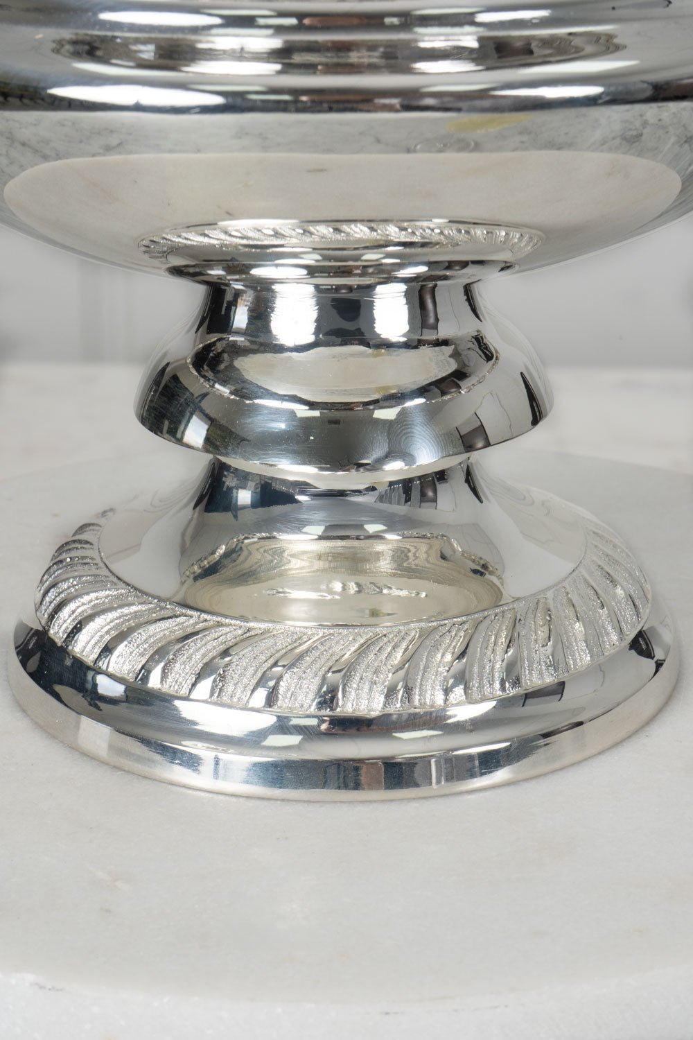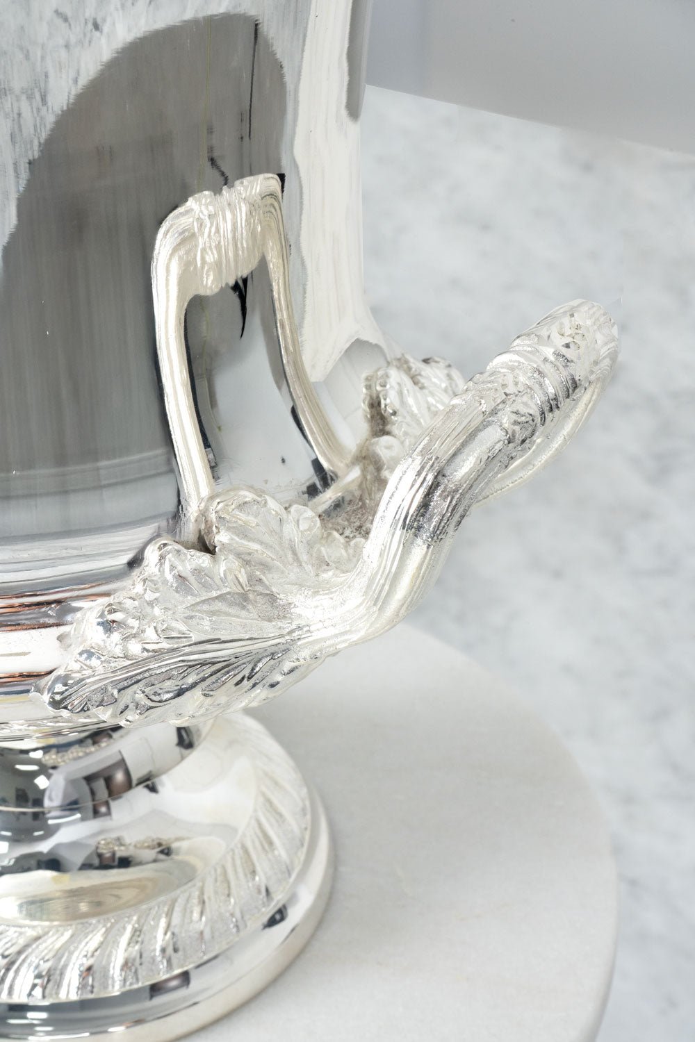 Esta champanheira ou balde de gelo, banhada a prata de lei, é uma peça que combina elegância e sofisticação no seu design, ideal para adicionar um toque de luxo à sua mesa. Um acessório elegante e intemporal para ocasiões especiais e um presente para toda a vida.