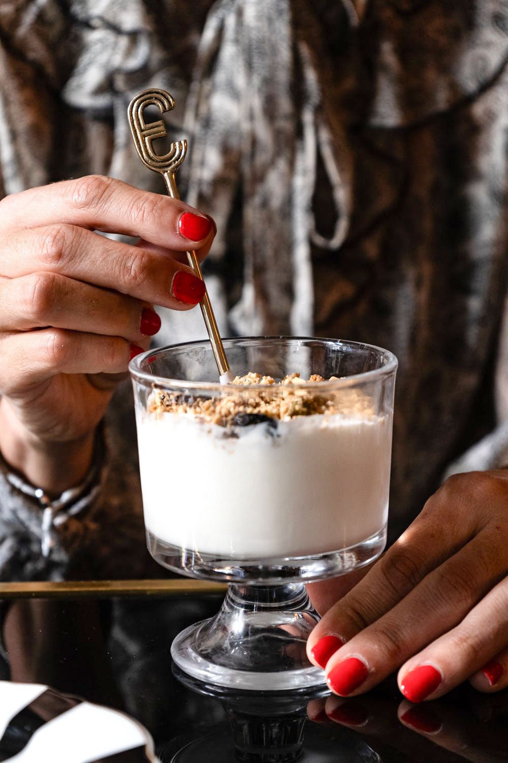 Esta elegante colher de bronze é o complemento perfeito para qualquer mesa. Possui a inicial E gravada na extremidade, tornando-o um presente personalizado e exclusivo.