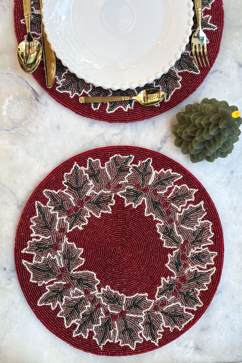 Descubra a nossa coleção de individuais de Natal com missangas, disponíveis em designs e cores clássicas de Natal. Um toque festivo e artesanal para decorar e realçar qualquer mesa de Natal.
