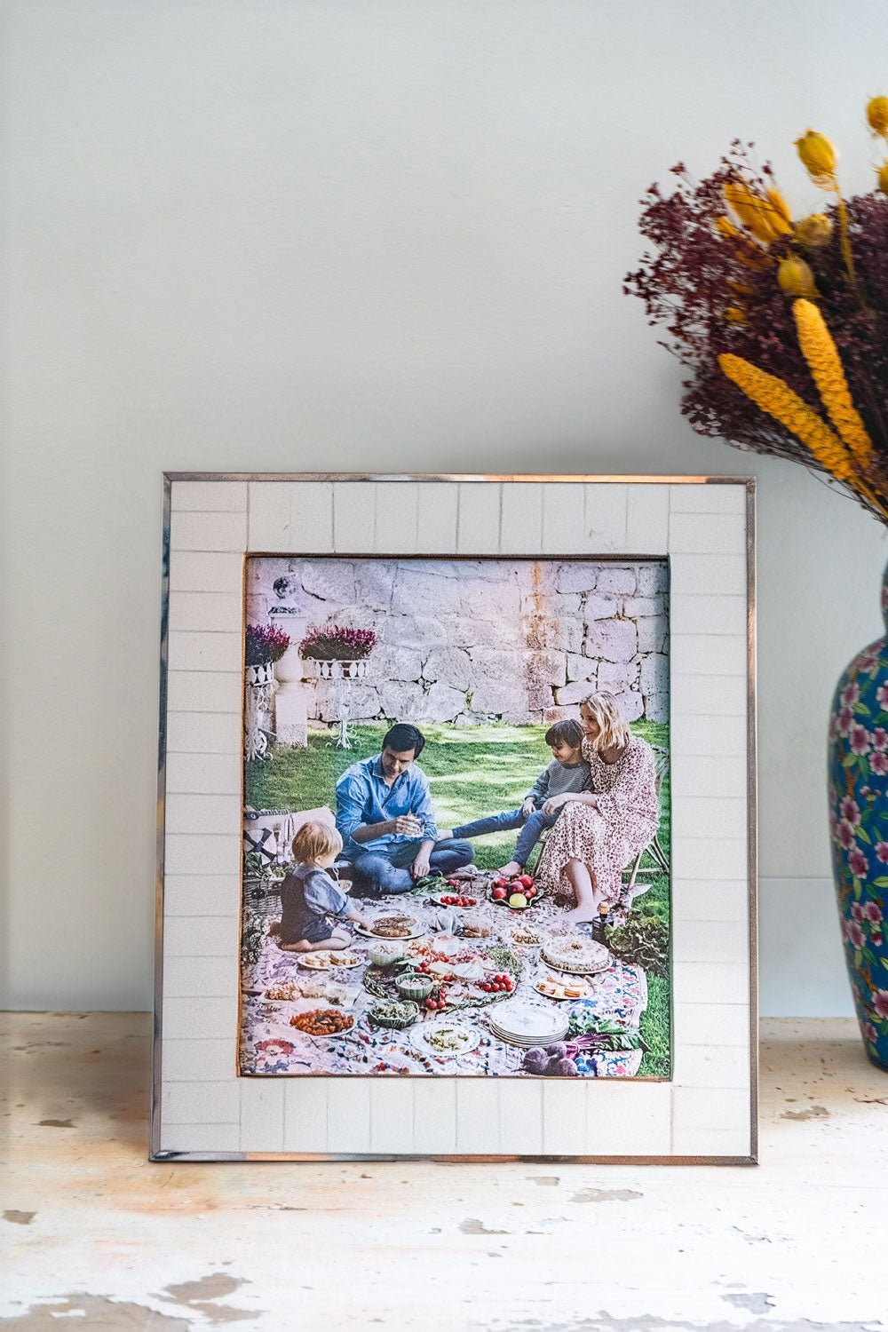 Esta moldura de fotos em resina branca com um delicado contorno metálico tem um design intemporal que se adapta perfeitamente a qualquer estilo de decoração, desde o clássico ao contemporâneo. Ideal para destacar as tuas recordações mais especiais, esta moldura é perfeita para decorar salas, quartos ou escritórios com estilo e simplicidade.