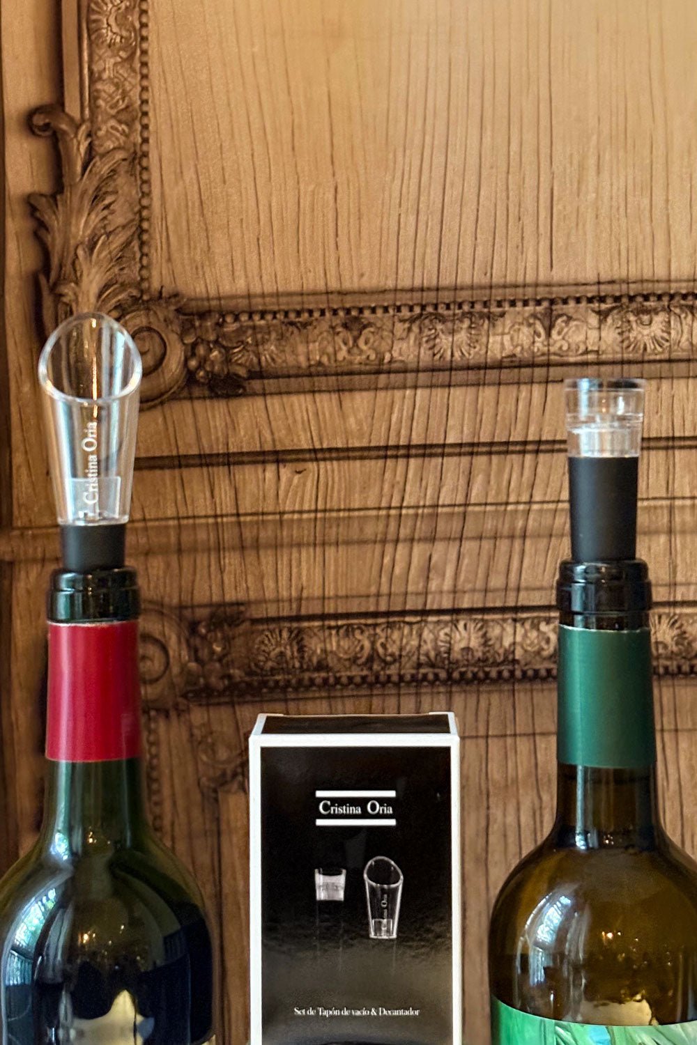 A tampa com bomba de vácuo permite retirar o oxigénio, evitando assim a oxidação do vinho e conservando-o durante mais tempo.